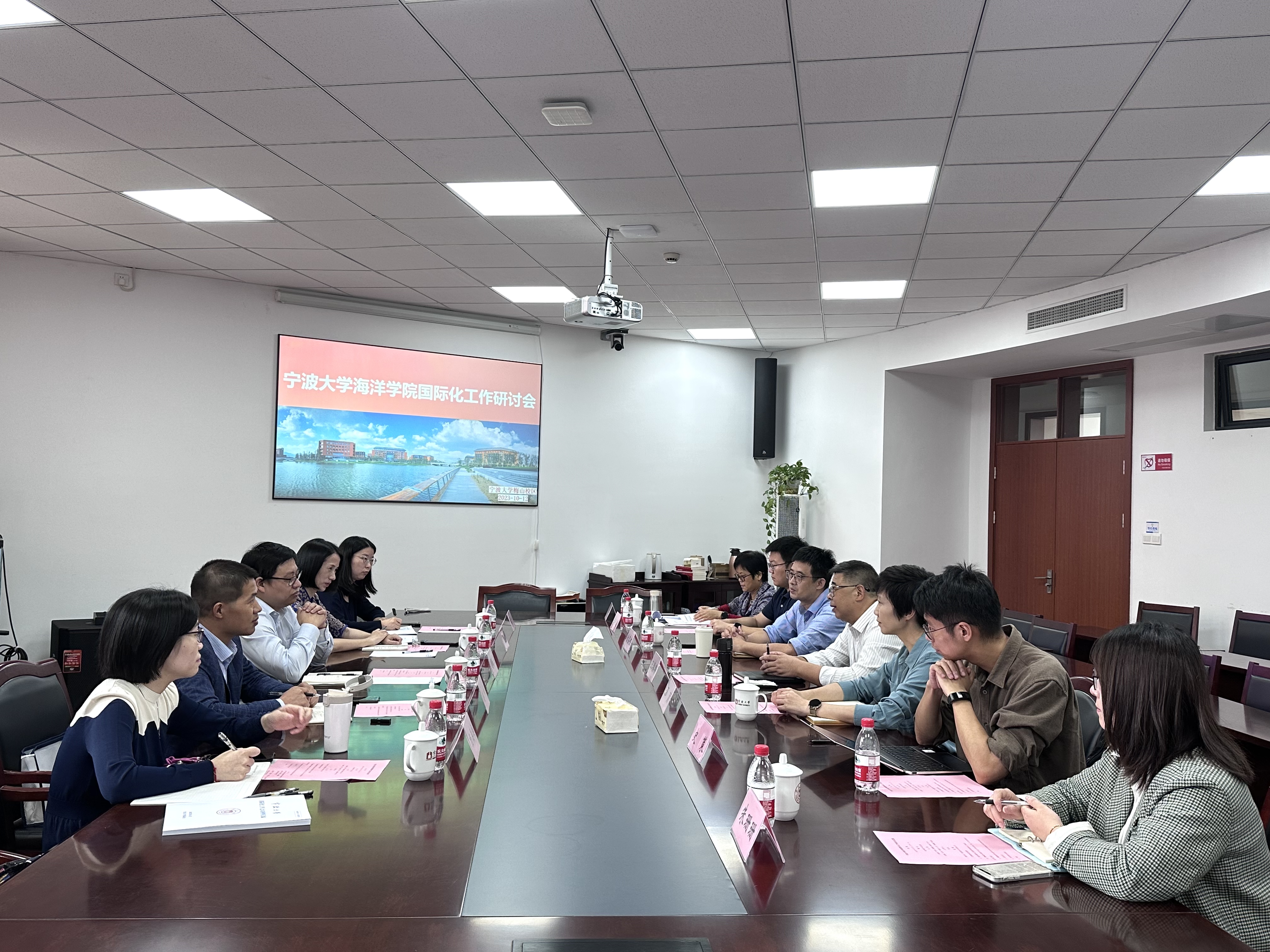 10月12日上午,海洋探花av开展了国际化工作研讨会,国际合作处处长赵基源、副处长潘峰一行5人,海洋探花av特聘院长王春琳、党委书记邵丽、副院长徐嘉杰以及教师代表等6人参加了研讨。会议由邵丽主持。