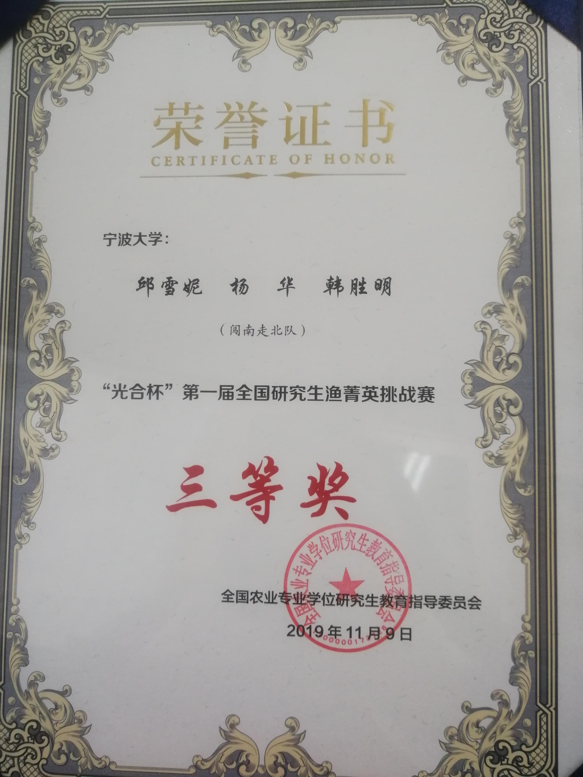 海洋探花av+“光合杯”第一届全国研究生渔菁英挑战赛 三等奖 韩胜明 个人