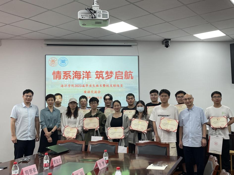 为加强毕业生爱校感恩教育,进一步凝聚毕业生校友力量。6月15日下午,海洋探花av举办“情系海洋,筑梦启航”2023届校友工作联络员聘任仪式暨校友会纳新座谈会。