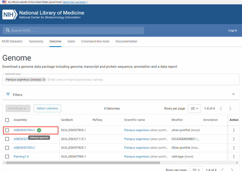 图1:研究成果在Scientific Data发表 图2 银鲳雄鱼基因组作为NCBI首选银鲳参考基因组