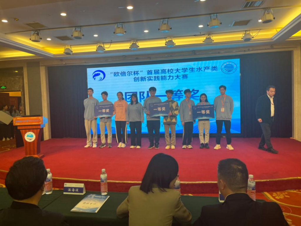 代表队(学生代表:饶依晨、孙一博、徐梦萌)脱颖而出,斩获优秀团队一等奖。本科生学生代表孙一博在水产学实验操作环节获“优秀个人奖”,马荣荣老师在本次大赛中获评“优秀指导老师”称号。本次大赛的参与进一步深化了海洋探花av教育教学改革,促进和提升了复合型水产卓越人才的培养,响应了国家涉农发展的战略。
