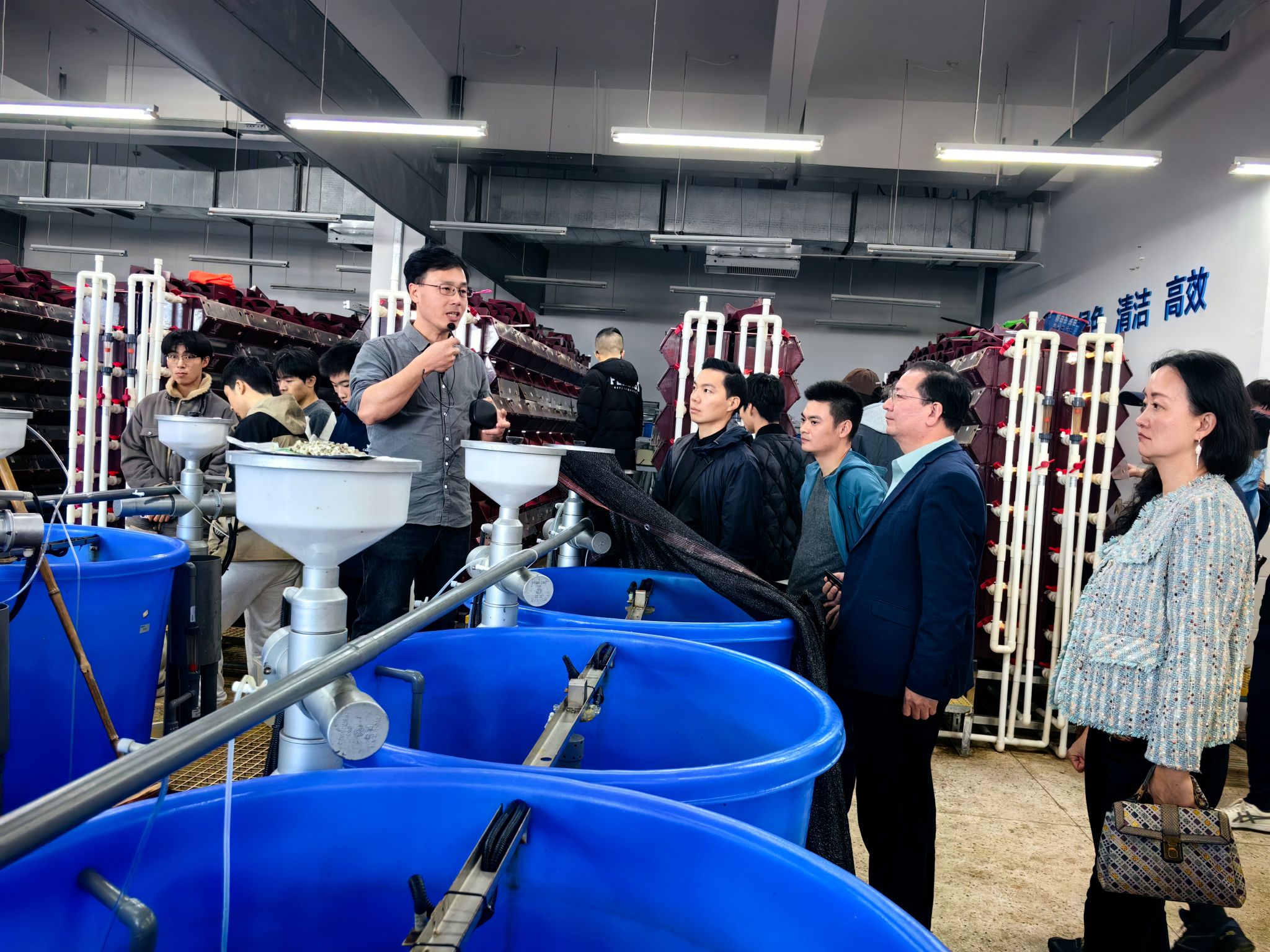 王教授对校友们表示热烈欢迎,并带领大家参观了探花av学科发展馆(院史馆)和“渔乐小苑”。在学科发展馆内,王教授详细介绍了探花av的发展历程、学科建设、学生工作、地方服务及校友工作中取得的成绩。在“渔乐小苑”基地内,王教授介绍了探花av智慧养殖系统和蟹公寓等水产养殖设施的优点,围绕在研究的银鲳鱼、青蟹和饵料微藻等特色品种进行了详细的科普,加深了大家对探花av的了解。