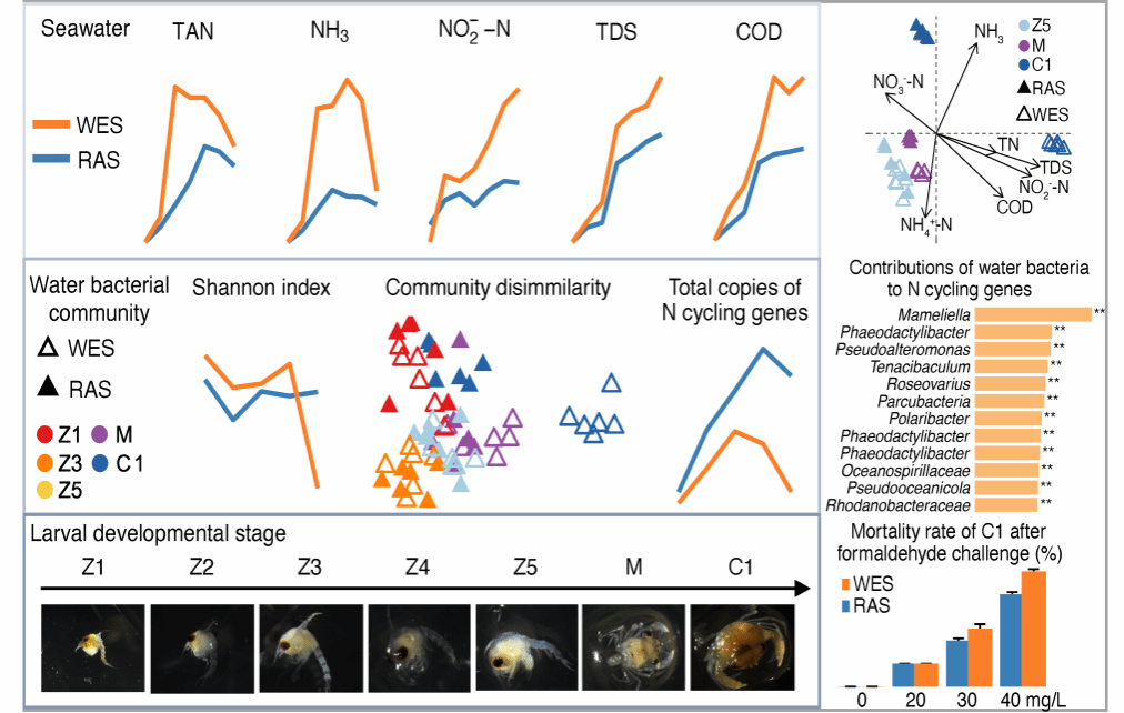 近日,环境领域顶级期刊《Water Research》(影响因子=12.8)发表了海洋探花av叶央芳课题组的最新研究成果“Recirculating aquaculture system as microbial community and water quality management strategy in the larviculture of Scylla paramamosain”。海洋探花av陆智斌博士、林维钏博士和李强硕士列该论文的第一至第三作者,通讯作者为叶央芳研究员和史策副教授。