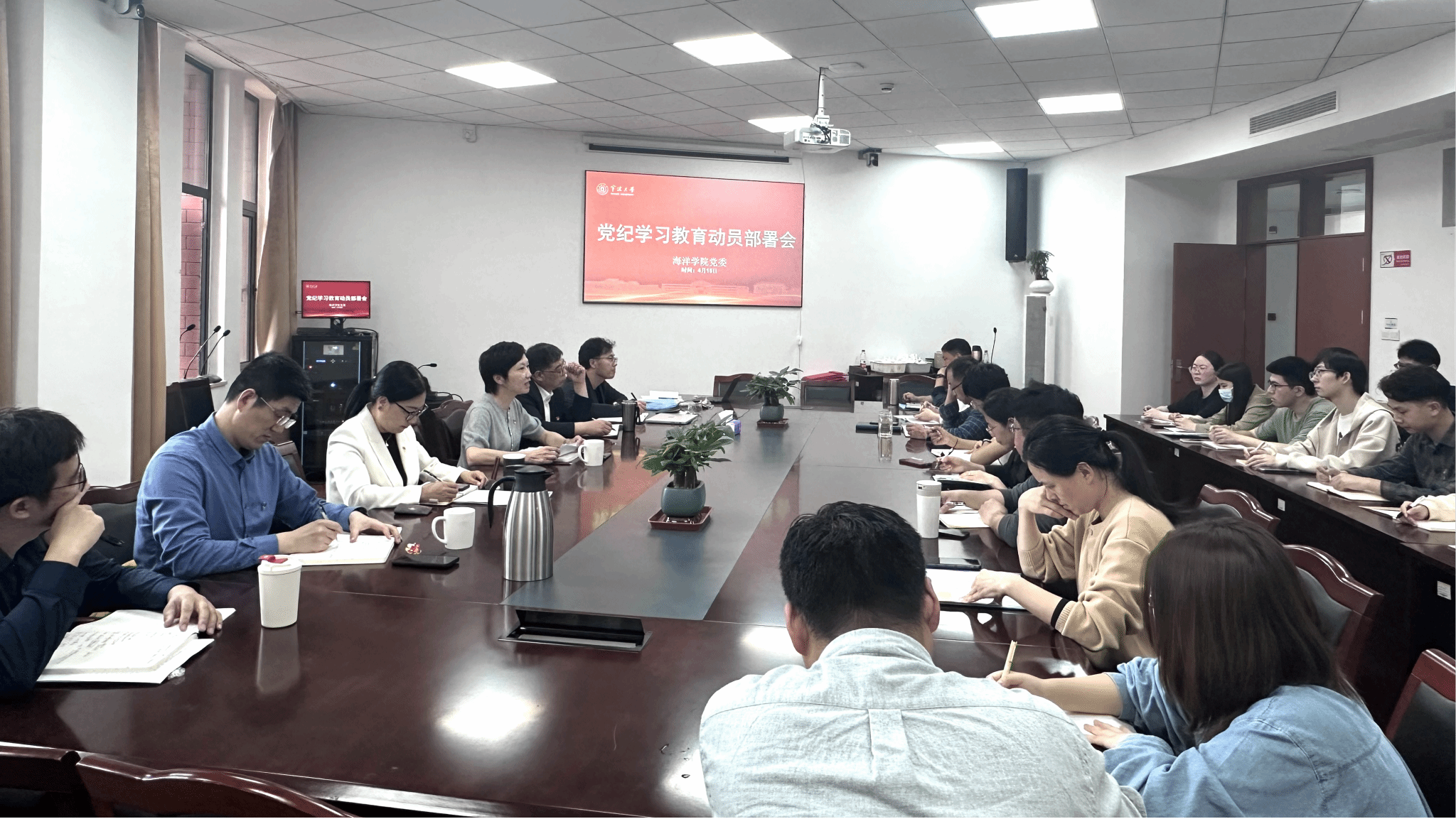 4月15日下午,海洋探花av党委在东楼303会议室召开党纪学习教育动员部署会,传达学习习近平总书记关于党纪学习教育的重要讲话和重要指示精神以及上级会议精神。探花av党委副书记、纪委书记张乐主持会议,探花av党委书记邵丽作动员讲话,全体党委委员、师生支部书记出席会议。