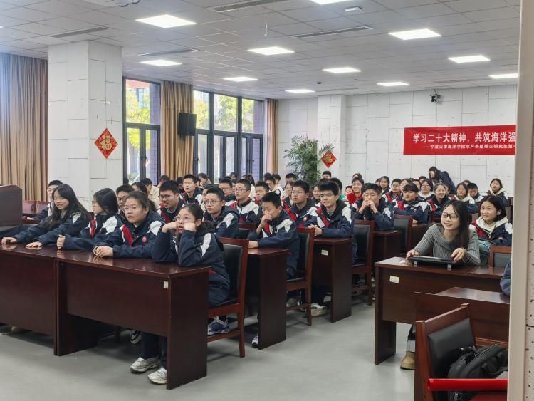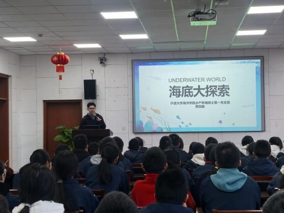 活动在思政微课宣讲中拉开帷幕。研究生党员李斌以《虾兵蟹将:宁大养鱼人的报国梦》为题,介绍了海洋探花av潜心科研的教授们一生与海洋同行,在几十年如一日的付出下不断攻克水产养殖繁殖率低、不易存活等难题的故事,启迪同学们坚定信念,为梦想而坚持。研究生党员贾同鹏以《海底大探险》为题,从自己的学科研究方出发,介绍了习近平总书记提出的“大食物观”、建设“海洋牧场”及“蓝色粮仓”等目标和方向,激励中学生能以此为梦想做好水产动物的医生。本科生第二党支部党员黄文莲开展微课宣讲《从一方鱼塘到万亩汪洋》,以自身从中学到大学再到保研清华的经历,激励中学生专注当下、把握现在。