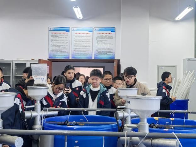 研究生党员耿昌盛、入党积极分子周斌杰带领师生参观了中试养殖基地,对依托于智能化循环水系统的蟹公寓以及各种规格养殖桶进行了详细介绍,并对探花av