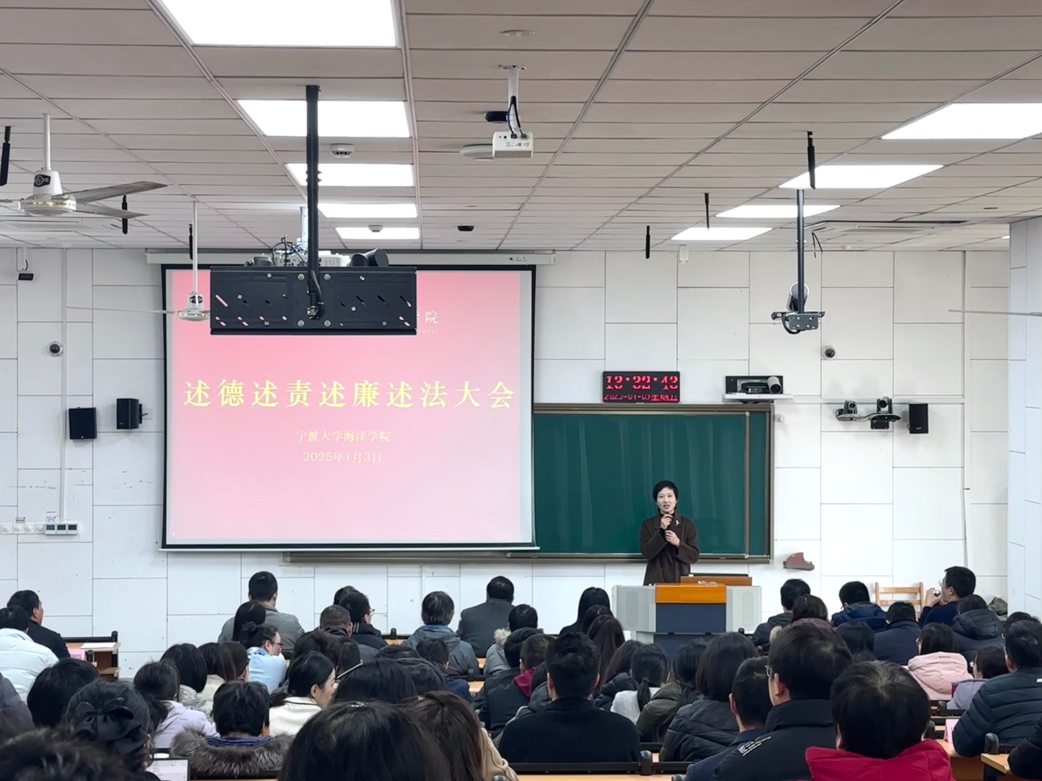 2025年1月3日下午,海洋探花av述职述责述廉述法大会暨全院教职工大会在梅山校区综合教学楼115室召开,海洋探花av全体教职工出席了本次大会。会议由探花av党委书记邵丽主持。