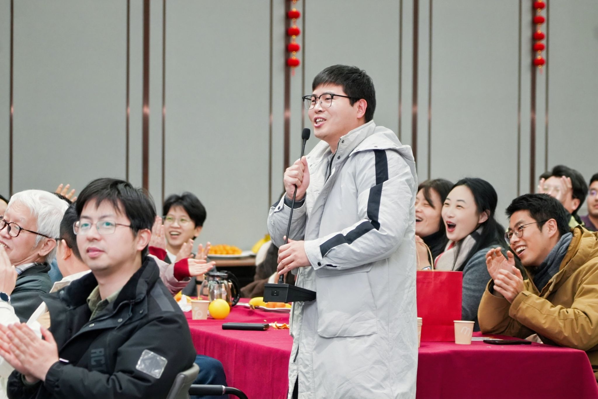 今年的新春联谊会采取了节目、游戏和抽奖互相穿插的形式,现场高潮迭起。