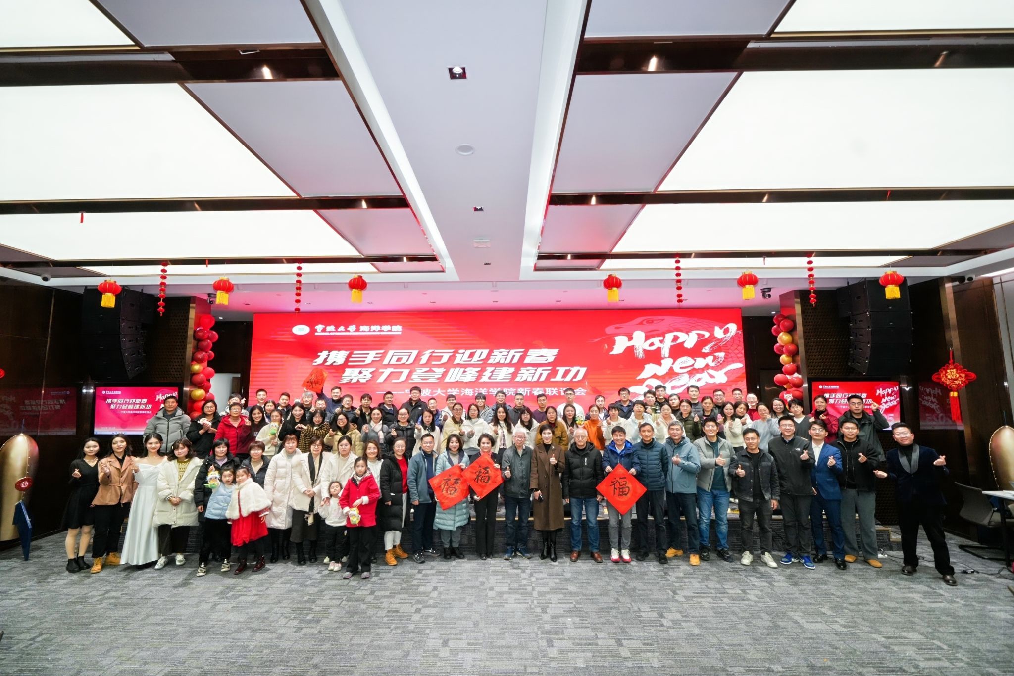 2025年1月15日,“携手同行迎新春,聚力登峰建新功” 海洋探花av2025年新春联谊会在梅山圆满举行。探花av党政领导班子成员、全院教职工、退休老教师、校友代表等100余人齐聚一堂。海洋探花av教职工余杰、王佳、袁明哲、张曼、蒋瑶翰、向蓉担纲主持。