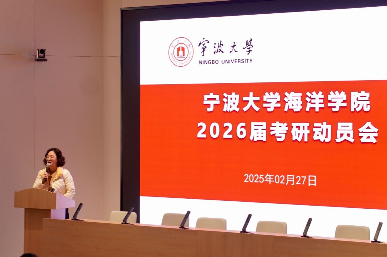 为进一步激发海洋学子的考研热情,明确考研目标,提升备考信心,2月27日,海洋探花av在中试基地一楼报告厅举办2026届考研动员会。本次动员会特邀探花av副院长陈相瑞、党委副书记张乐、生物系主任陈娟娟、水产系副主任彭瑞冰担任主讲嘉宾,活动由学工办主任王腾飞主持。