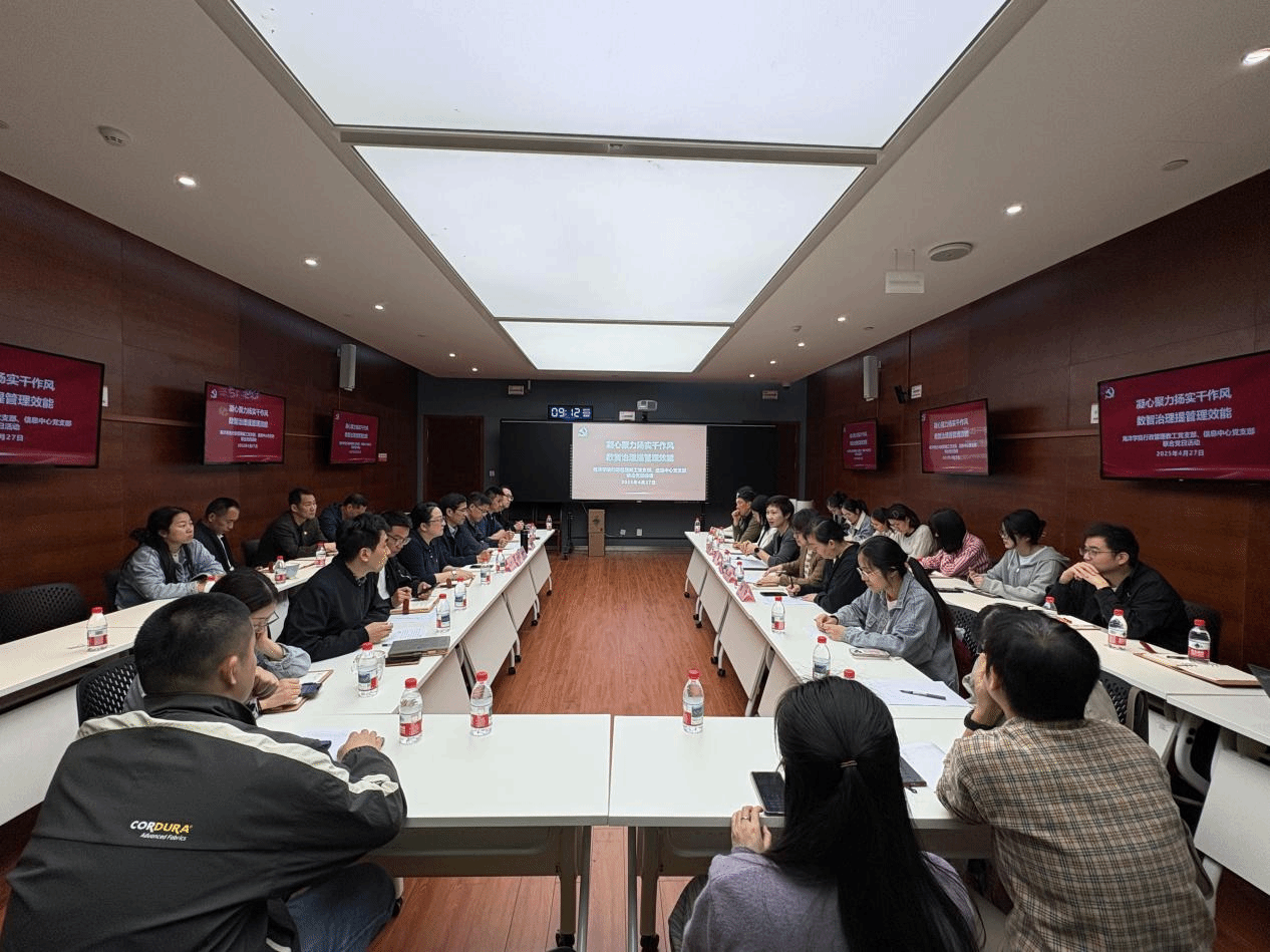 为推动党建与业务深度融合,以数智化赋能学校高质量发展,海洋探花av行政管理教工党支部和信息中心党支部于4月27日在真诚图书馆A212会议室联合开展“凝心聚力扬实干作风,数智治理提管理效能”主题党日活动。双方全体党员通过实地参观、理论学习、业务交流等形式,共谋数智治理新路径,同绘教育强省建设新篇章。