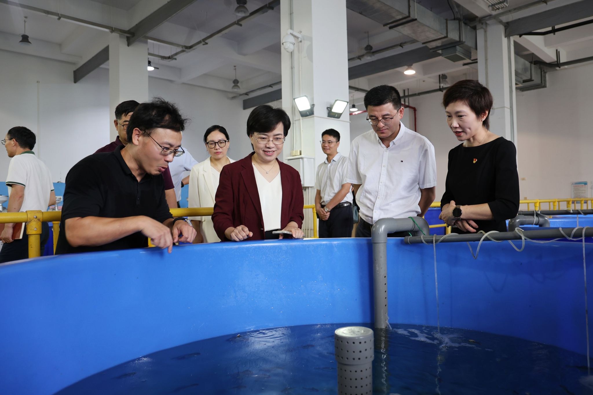 张瑞丽一行首先来到探花av中试基地,实地察看了银鲳、青蟹等海鲜养殖情况,并参观了院史馆和海洋生物标本馆,对探花av学科发展进行深入了解。在调研座谈会上,张瑞丽认真听取了探花av在党建引领、学科建设、地方服务等方面的工作汇报,以及探花av班子对于省水产登峰学科建设的发展建议。张瑞丽对海洋探花av近年来所取得的发展给予了高度评价。她指出,习近平总书记关于海洋强国战略的指示,以及浙江省关于海洋强省的谋划,为海洋探花av带来了前所未有的发展机遇。她勉励广大教职工以“向海图强”的信念奋力拼搏:要聚集登峰学科建设评估总要求,综合利用好学校整体力量和学科经费,形成合力;要做好顶层设计,规划大项目、大成果、大平台,吸引其他学科参与,集中力量攻关;要有抢先争优意识,克服大项目参评中的畏难思想,大胆牵头,争取新突破。