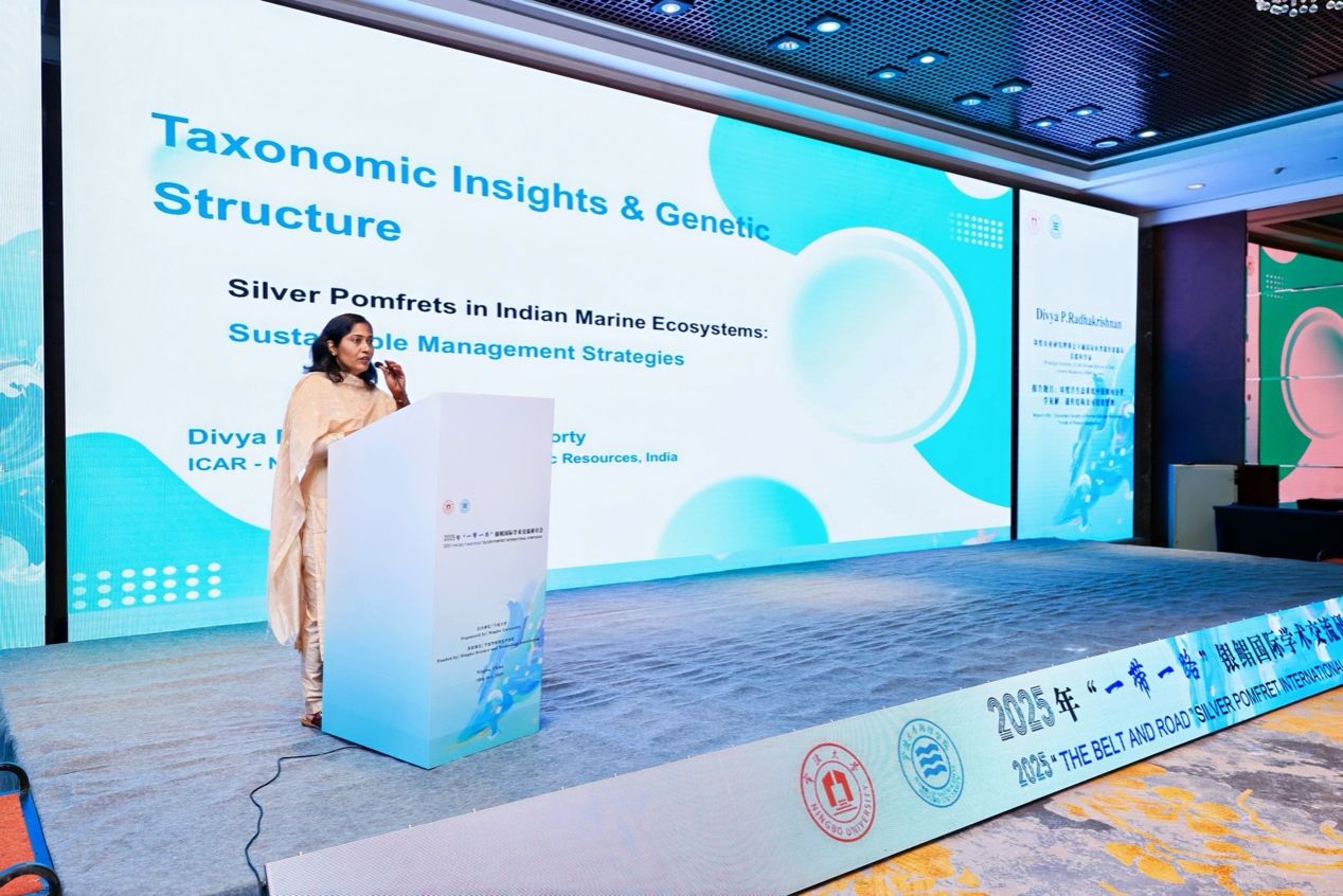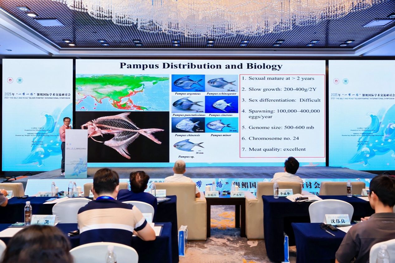 主办的首届“一带一路”银鲳国际学术交流研讨会在宁波成功召开。本次会议汇聚了来自巴基斯坦、科威特、印度、马来西亚、新加坡等多个“一带一路”共建国家的海洋渔业科研专家与资深学者,围绕银鲳种质资源保护、人工繁育技术创新、养殖模式优化及产业化推进等议题展开深入交流,共同探讨这一重要海洋经济物种的可持续发展路径。
