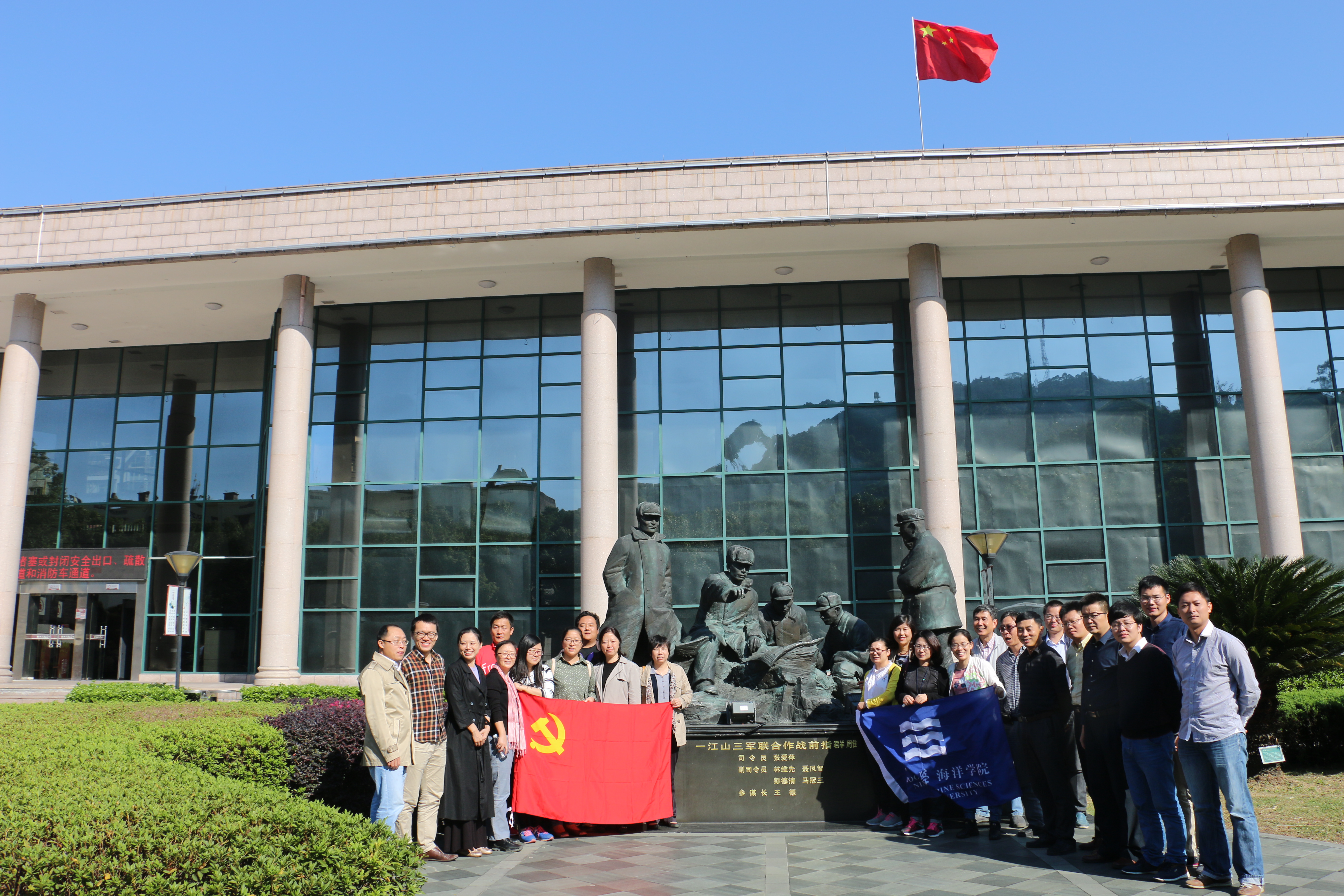 为深入开展“两学一做”党员教育活动,10月27日-28日,海洋探花av组织教工党员在党委书记张国良中的带领下,赴台州参观解放一江山岛烈士陵园和解放一江山岛烈士纪念馆,接受革命传统和爱国主义教育。