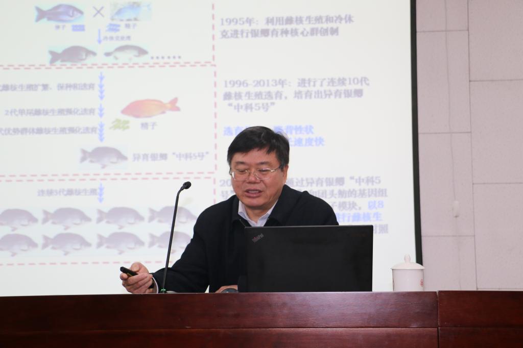 2018年12月27日上午,中国科探花av水生生物研究所桂建芳院士在梅山校区海洋探花av竺银康楼107报告厅为我院师生做了题为“水产遗传育种实践与思考”的学术报告。