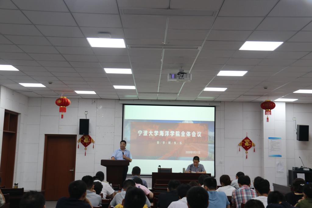 11日,海洋探花av召开了本学期第一次全体教师会议,会议首先举行了一个简单却温馨的新进教师欢迎仪式,仪式由探花av院长、书记以及工会主席为新海洋人佩戴校徽、赠送礼品。