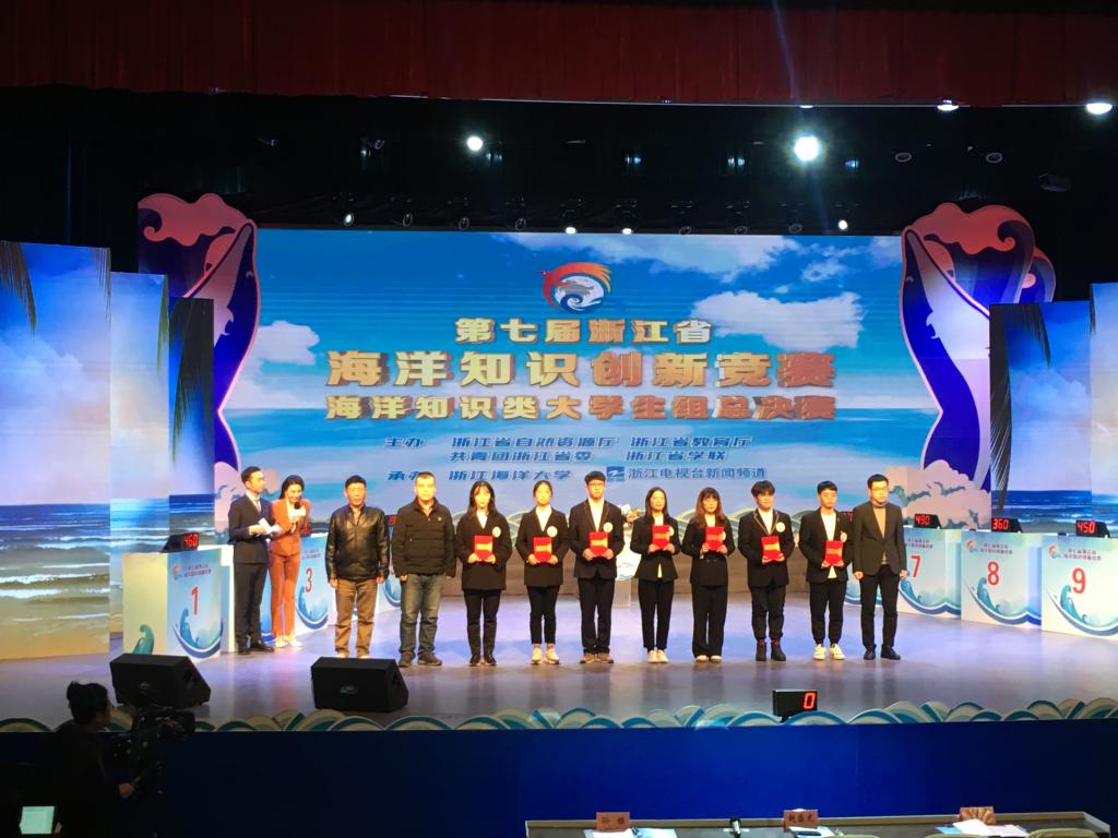 12月5日,第七届浙江省大学生海洋知识创新竞赛电视总决赛在浙江海洋大学举行。此次比赛经过网络赛选拨和和高校组织推荐两种形式组织学生参与,来自全省包括浙江大学、浙江工业大学在内的25所高校的40名选手参加半决赛。经过激烈的笔试和现场赛角逐,10名选手顺利晋级电视总决赛。其中来自海洋探花av18生物技术专业的杨倩同学以总分第三名的成绩晋级总决赛,最终凭借稳定的发挥荣获第七届浙江省大学生海洋知识竞赛总决赛二等奖。