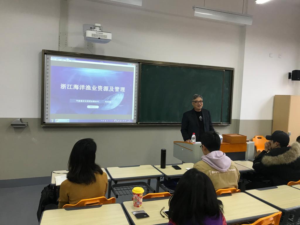 2020年12月7日上午,特邀来校讲座的宁波市渔文化促进会何其茂副会长在梅山校区李本俊楼202教室,给我院2020级渔业发展专业的90多位研究生作了一场题为“浙江海洋渔业资源管理与保护”的专题报告。