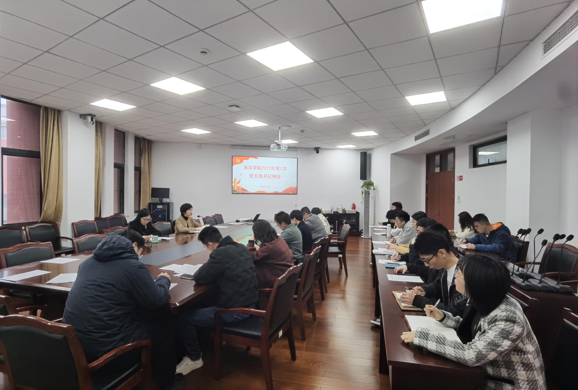 3月22日上午,海洋探花av在行政楼303会议室召开2023年第1次党支部书记例会,海洋探花av党委书记邵丽主持会议,探花av党委副书记、纪委书记张乐、全体教职工党支部书记、学生党支部书记、组织员等参加会议。