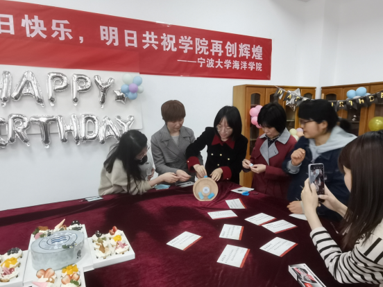 4月27日上午,海洋探花av东楼一楼教工之家装饰得玲珑满目,似有过节气氛,原来是探花av工会安排了一场四月过生日教职工的集体生日会,旨在进一步增强教职工凝聚力、向心力和归属感,营造健康文明、积极向上的工作氛围。生日会由工会福利委员陈晨主持。