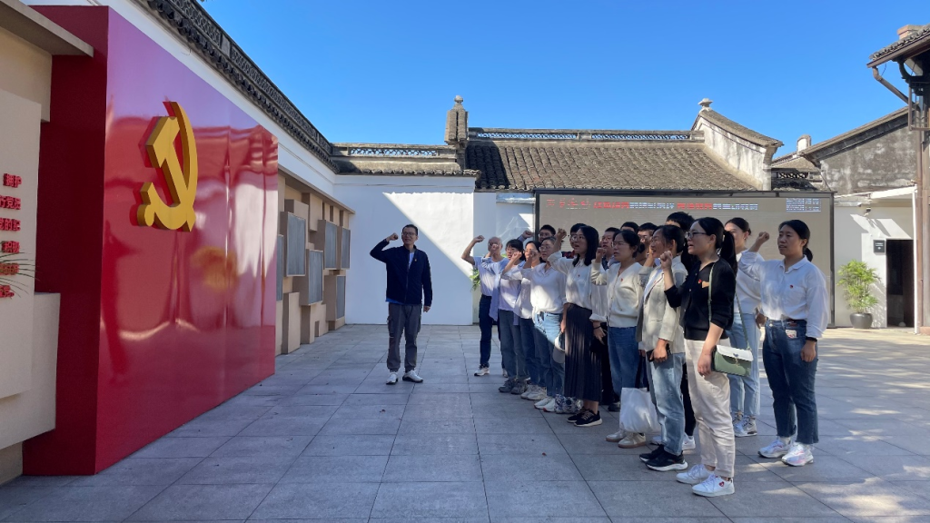 上午,支部党员参观了张人亚党章学堂,了解张人亚同志的革命历程和生命厚度,张人亚同志心怀赤子之心,一往无前走在革命道路上的共产党人典型,而传承党性、继承发扬党的优良传统,靠的就是一颗初心,无关功利,只问耕耘,不问收获。也指导我们党员要敢于坚持,勇于担当,在工作中进一步提升自己的能力。面对党旗和入党誓词,我们在姜海波书记的带领下,再次向党旗宣誓。
