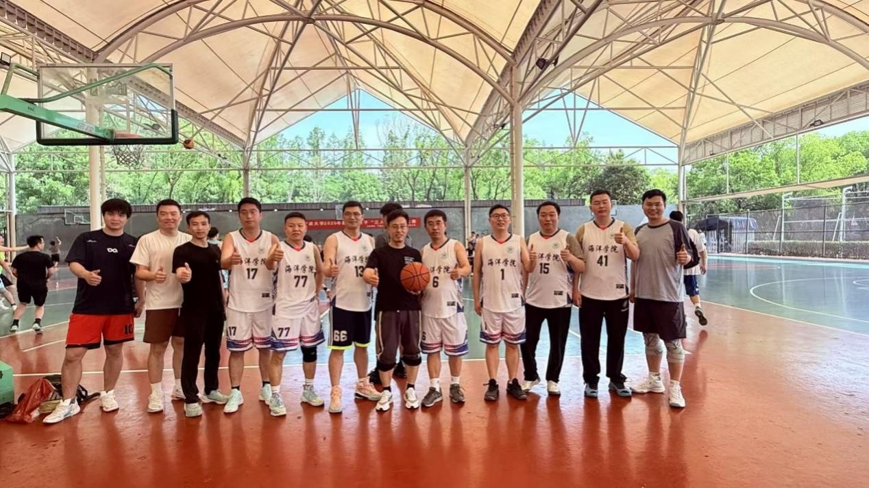 胜利属于每一位为探花av拼搏的人!探花av学术委员会主任李成华老师和工会主席王亚军老师赛前组织系统性训练,并带队到场助威。从科研教学一线到篮球赛场,我们始终秉持海洋人敢闯敢拼的坚强韧劲,这次夺冠是团队信念的胜利!