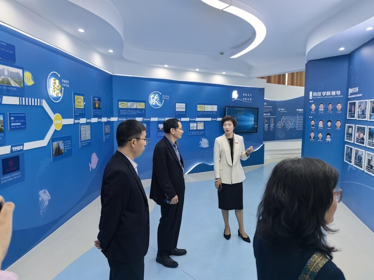 为让学术专家深入了解探花av在党支部引领下的发展成果,本次参观交流环节由教师党支部精心统筹,在邵丽书记及支部党员代表陪同下,周集中院士首先参观了探花av院史馆与中试基地。通过讲解与展示,周院士深入了解了海洋探花av的发展历程、学科建设成就与人才培养体系,对探花av近年来以党建为引领、以科研促发展的理念与成效表示充分肯定。在中试基地考察中,周院士重点参观了智慧水产养殖系统,并就系统中的微生物管理与生态调控问题与教师代表进行了交流。他对探花av科研条件、技术平台及产学研融合情况给予了高度评价,认为海洋科技创新是推动可持续发展的重要方向,对探花av