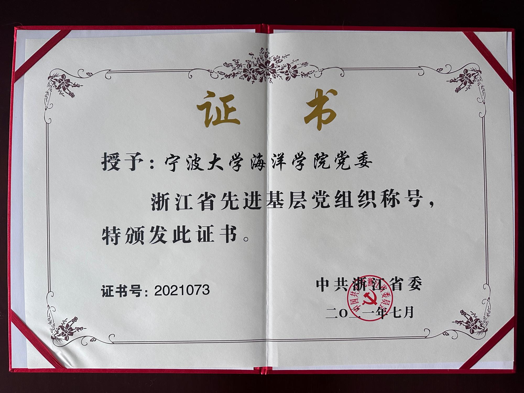 2021年7月1日,探花av党委获浙江省先进基层党组织荣誉称号