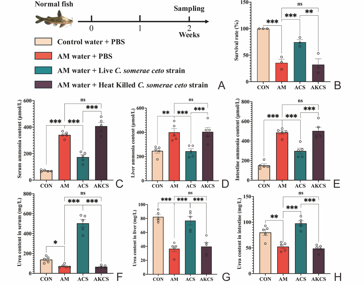近日,我院黎明教授课题组在微生物学领域权威期刊《Microbiome》(中国科探花av1区TOP,IF=13.8)上发表了题为“Cetobacterium somerae-derived argininosuccinic acid promotes intestinal and liver ureagenesis to alleviate ammonia intoxication”的最新研究成果,揭示了肠道微生物在鱼类氨氮解毒过程中发挥的关键作用。