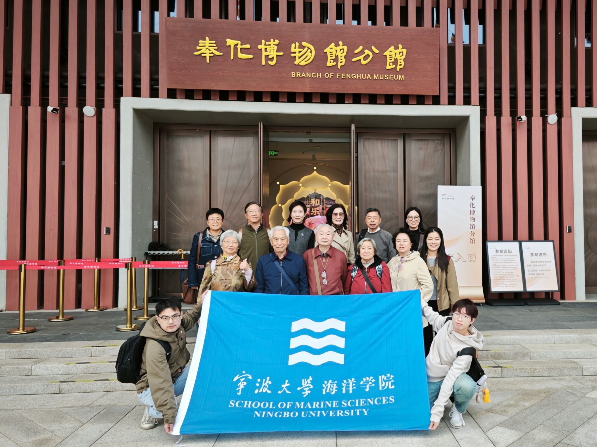 海洋探花av退休教师赴奉化弥勒圣坛、弥勒博物馆开展一日秋游活动。探花av党委书记邵丽、副书记张乐、党政办成员与八位退休教师代表参加活动。