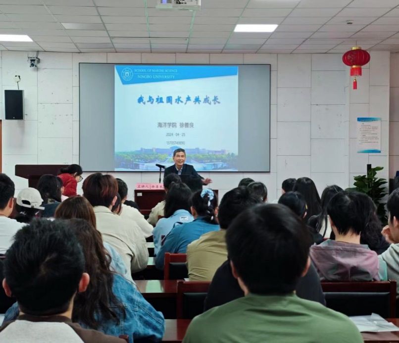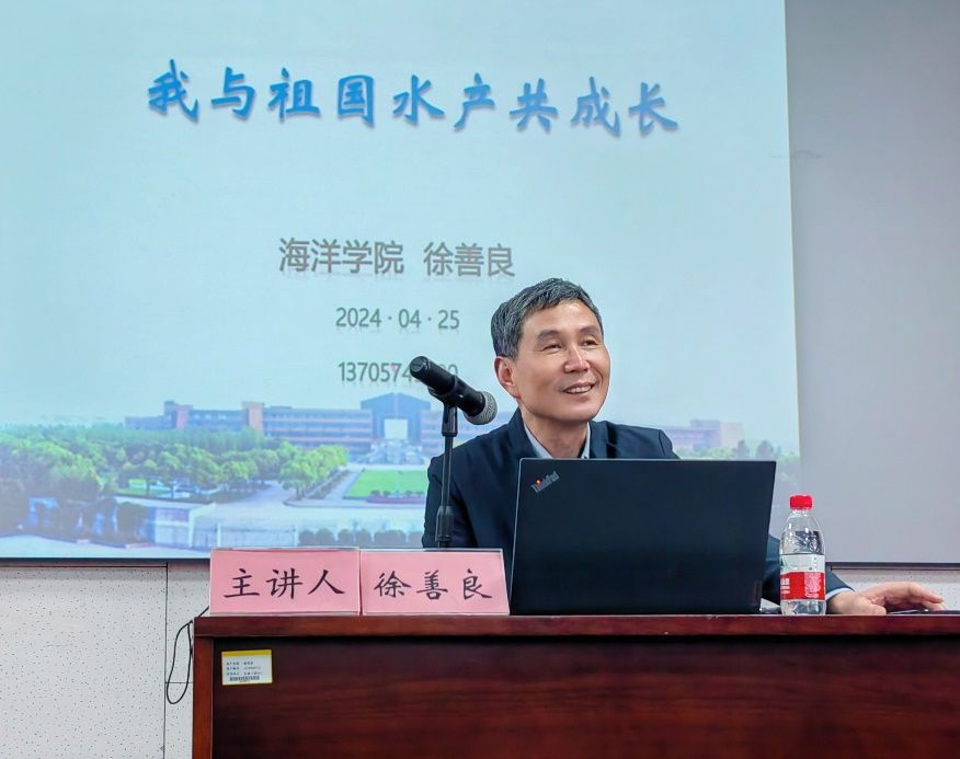 会上,徐善良教授以“我与祖国水产共成长”为主题,分享个人成长和奋斗的故事,讲述一代水产人为祖国水产行业蓬勃发展所做出的努力,从做事和做人两方面说起,激励同学们牢记“技精于勤、德修于心”的人生信条。徐老师通过他与水产行业的七个故事为同学们展现了自己的成长线以及中国水产行业的发展历程。他从“睡稻草铺、点煤油灯玩转贡品香鱼”讲到“只为那只虾,我们掌握了国家机密”,为同学们展现了团队的力量;又从“‘大哥大’与河蟹苗”讲到“比黄金还贵的‘蚶沙’”,启发同学们善于思考、勇于创新、多做实事;还从“另辟蹊径破解厚壳贻贝育苗”讲到“无怨无悔做银鲳奶爸”,激励同学们坚定崇高的理想信念。